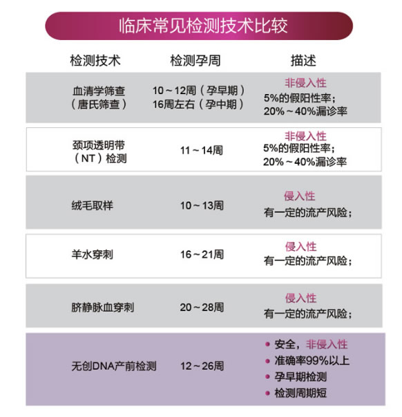 孕妇在怀孕期间进行必要的产前检测,可以提前预知胎儿的健康问题。无创DNA产前检测技术是一项安全、准确、简单、快速的新型胎儿染色体疾病检测技术。该技术仅需抽取孕妇的静脉血,即可准确判断胎儿是否患有21三体综合征、18三体综合征、13三体综合征等染色体疾病。无创DNA产前检测技术用于胎儿染色体非整倍体疾病的产前检测,具有以下优势: